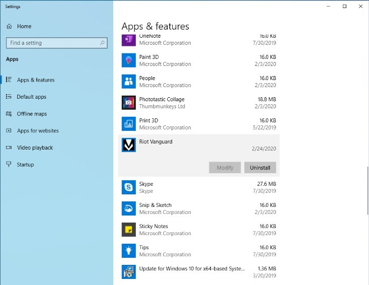 Scrolle, bis du Riot Vanguard findest, klicke auf die drei Punkte daneben und dann auf Deinstallieren. Du wirst zur Bestätigung erneut gefragt: Klicke auf Deinstallieren.