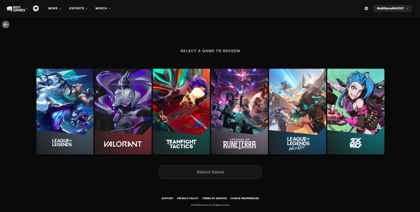 Seleziona il gioco in cui desideri utilizzare il codice cash. I codici possono essere riscattati solo in gioco e non possono essere utilizzati parzialmente, quindi scegli con attenzione! Se il titolo di un gioco è grigio, significa che l'account non ha ancora avviato quel gioco.