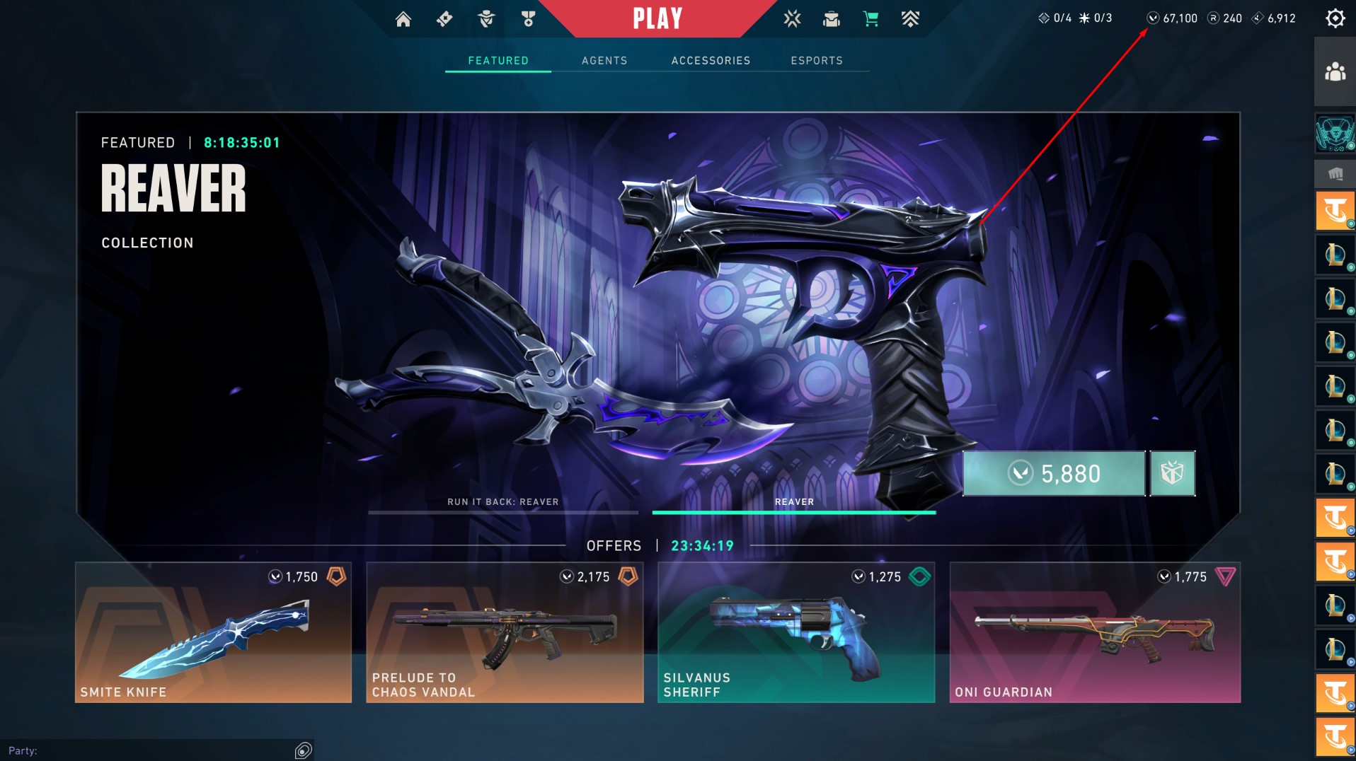 - Zalogujcie się do klienta gry VALORANT i kliknijcie ikonę VALORANT znajdującą się obok VP w prawym górnym rogu.